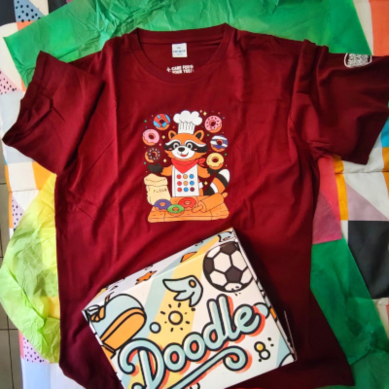 The details are deliciously perfect - from the bag of flour to the wooden cutting board, and those colorfully frosted donuts floating like sweet dreams around our talented raccoon chef! The retro-inspired art style gives it that extra dash of charm that makes it impossible not to smile!